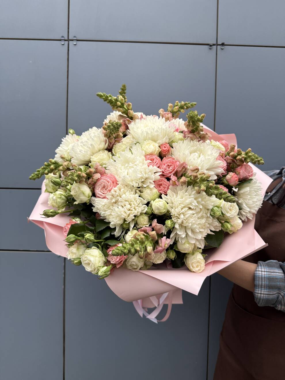 Каждый букет создается с уникальным творческим подходом наших флористов, учитывая ваши предпочтения и доступность самых качественных цветов. Мы оставляем за собой право заменять некоторые цветы на аналогичные в зависимости от времени года. Цены на сайте указаны для лучшего понимания размера композиции и для удобства заказа.