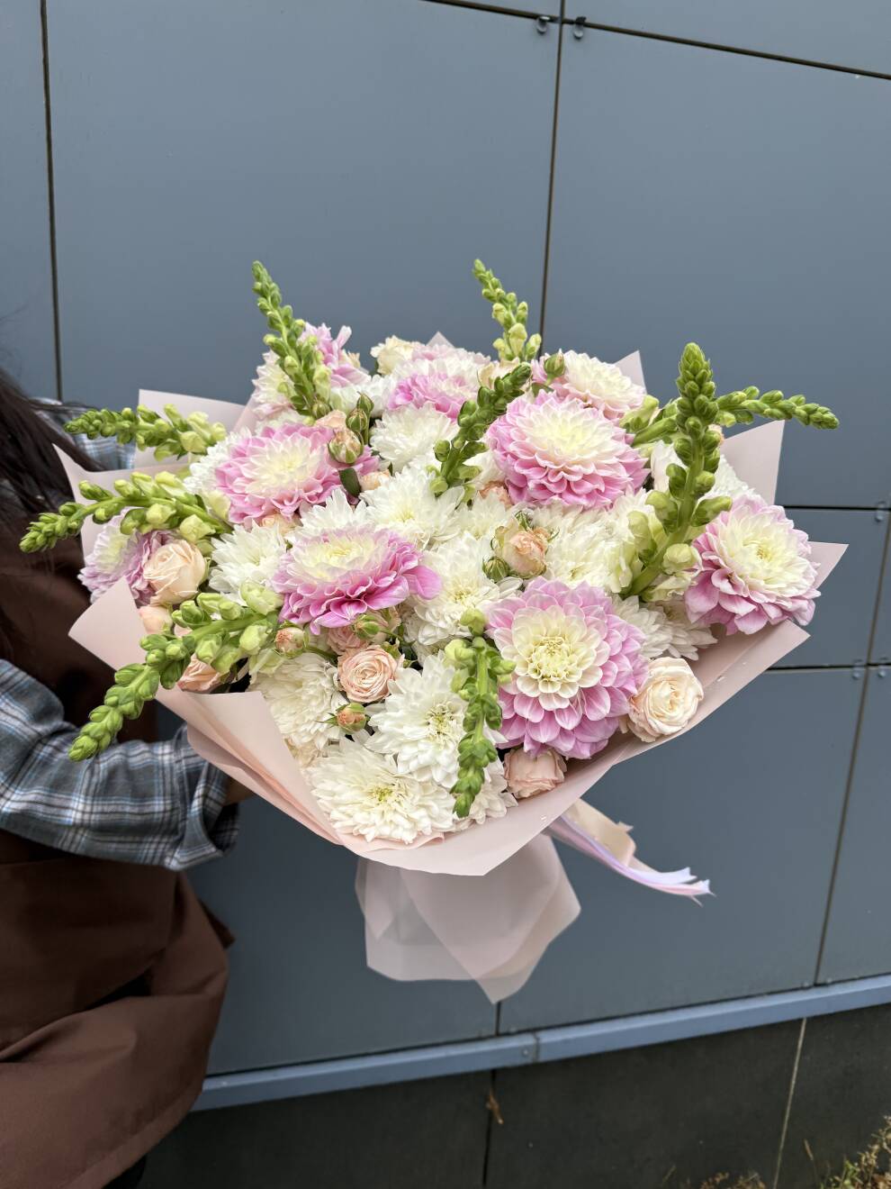 Каждый букет создается с уникальным творческим подходом наших флористов, учитывая ваши предпочтения и доступность самых качественных цветов. Мы оставляем за собой право заменять некоторые цветы на аналогичные в зависимости от времени года. Цены на сайте указаны для лучшего понимания размера композиции и для удобства заказа.