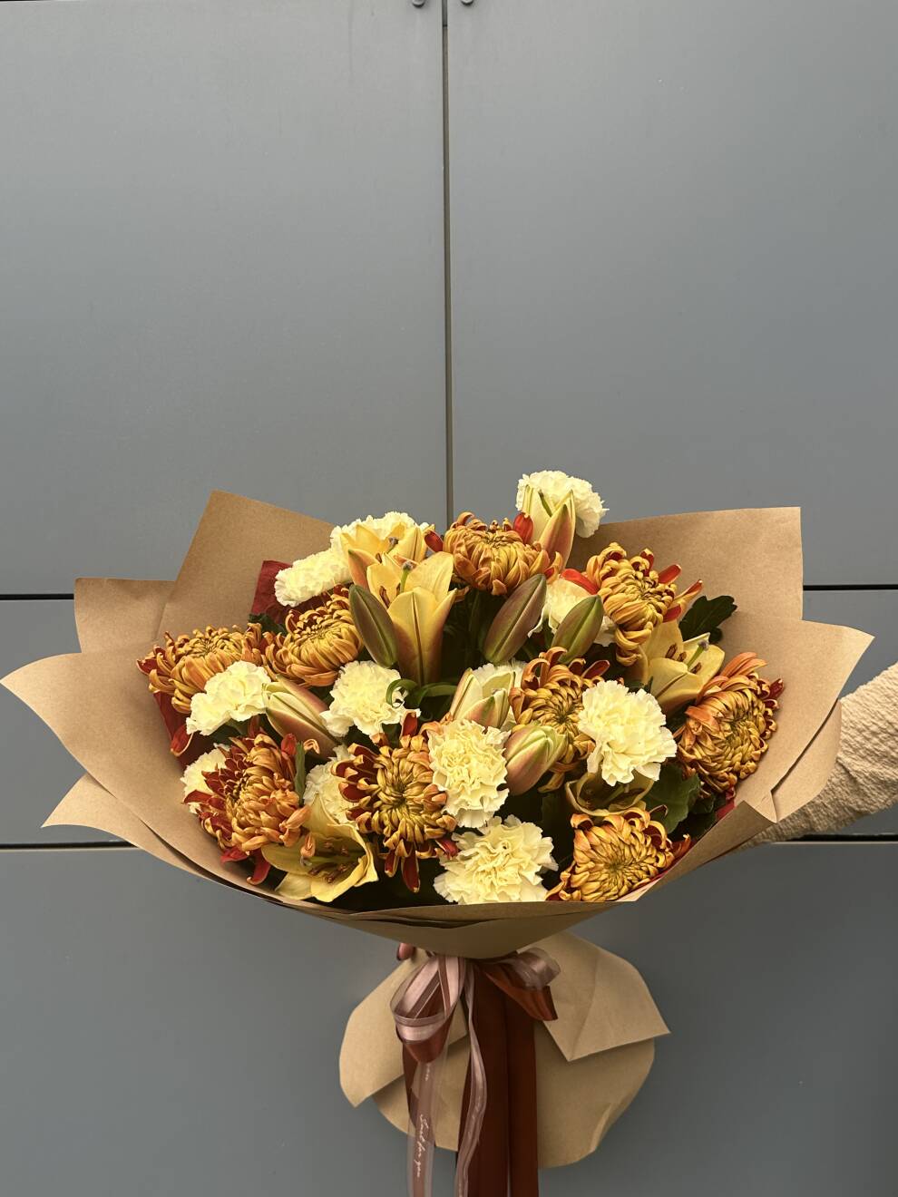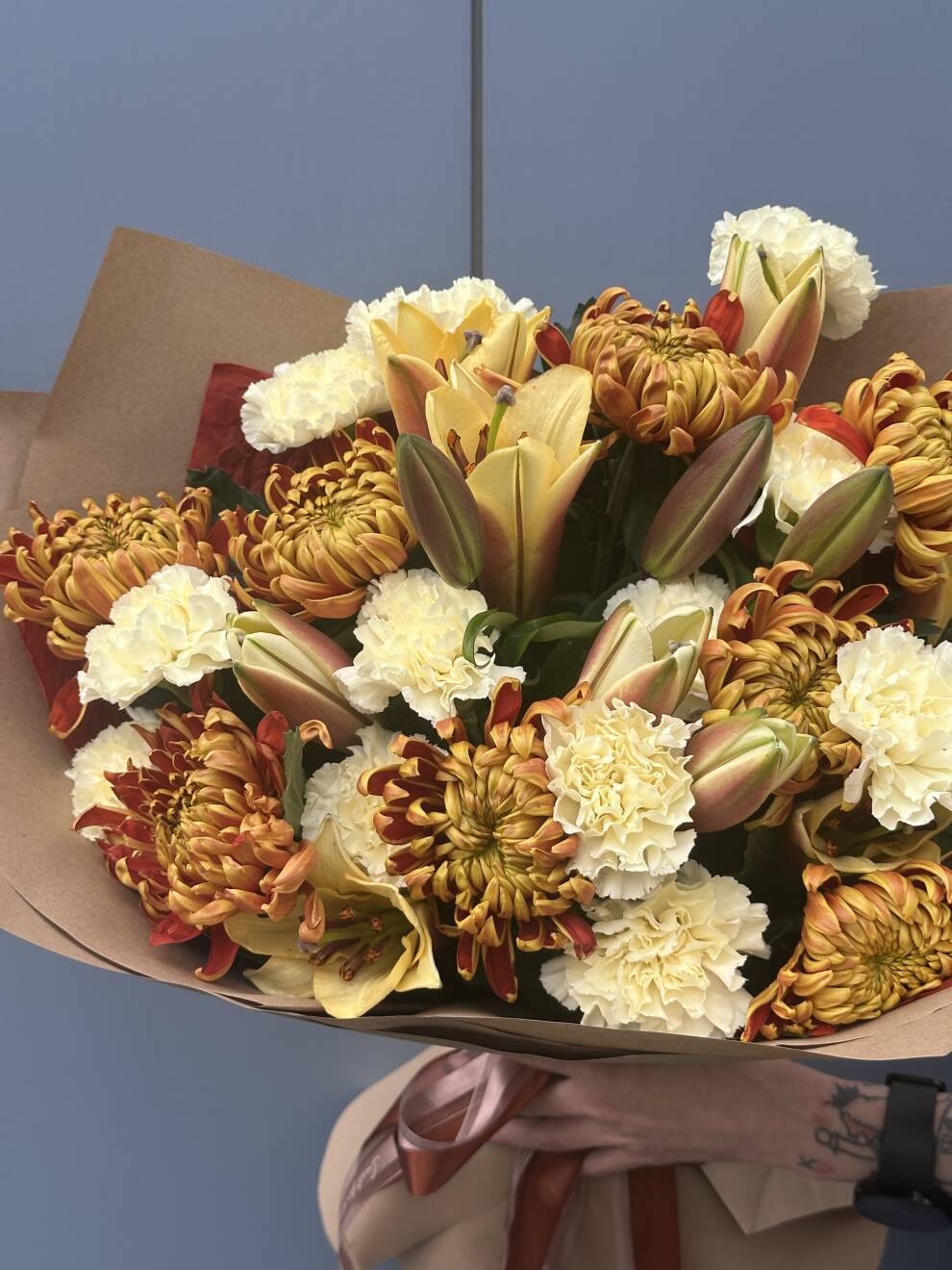 Букет из хризантемы Виена с лилией
