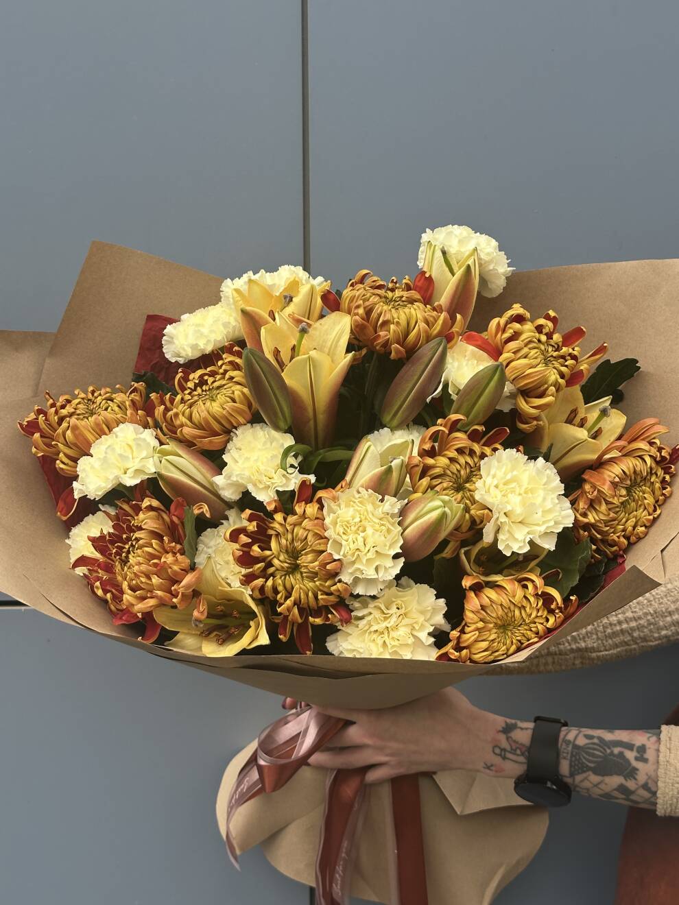 Каждый букет создается с уникальным творческим подходом наших флористов, учитывая ваши предпочтения и доступность самых качественных цветов. Мы оставляем за собой право заменять некоторые цветы на аналогичные в зависимости от времени года. Цены на сайте указаны для лучшего понимания размера композиции и для удобства заказа.