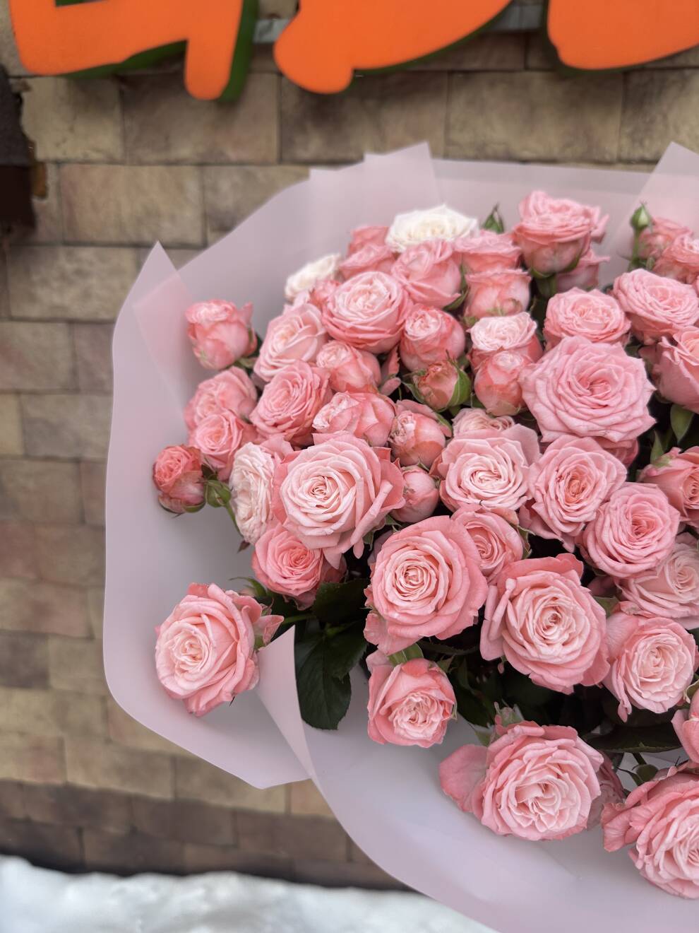 Каждый букет с розой собирается из свежих бутонов с учётом аромата и сочетаемости сортов. Можем оформить композицию в коробке, корзине или классической упаковке. При желании добавим открытку — ваш текст будет аккуратно написан от руки.