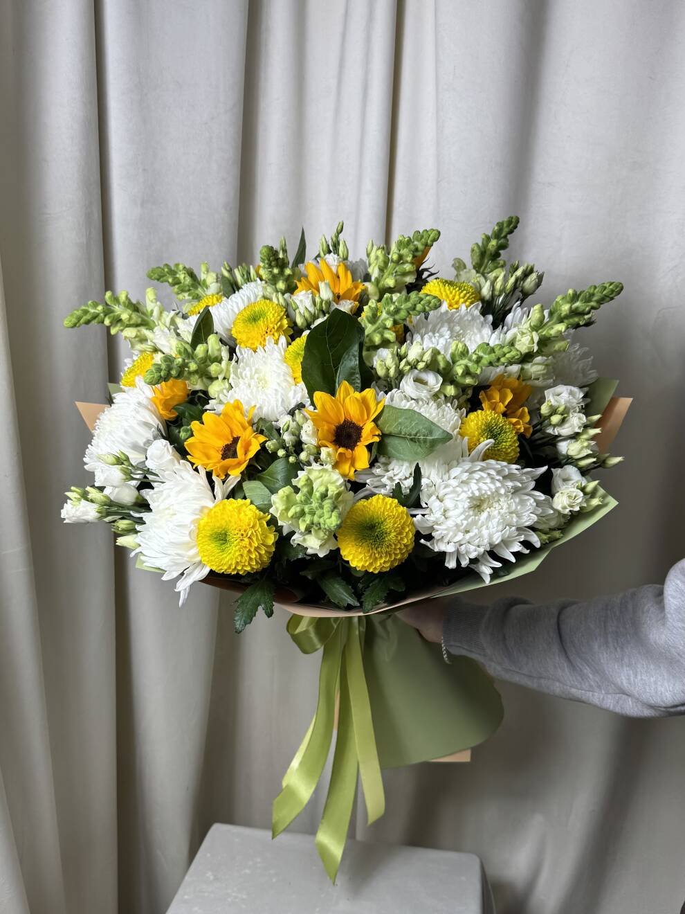 Каждый букет создается с уникальным творческим подходом наших флористов, учитывая ваши предпочтения и доступность самых качественных цветов. Мы оставляем за собой право заменять некоторые цветы на аналогичные в зависимости от времени года. Цены на сайте указаны для лучшего понимания размера композиции и для удобства заказа.