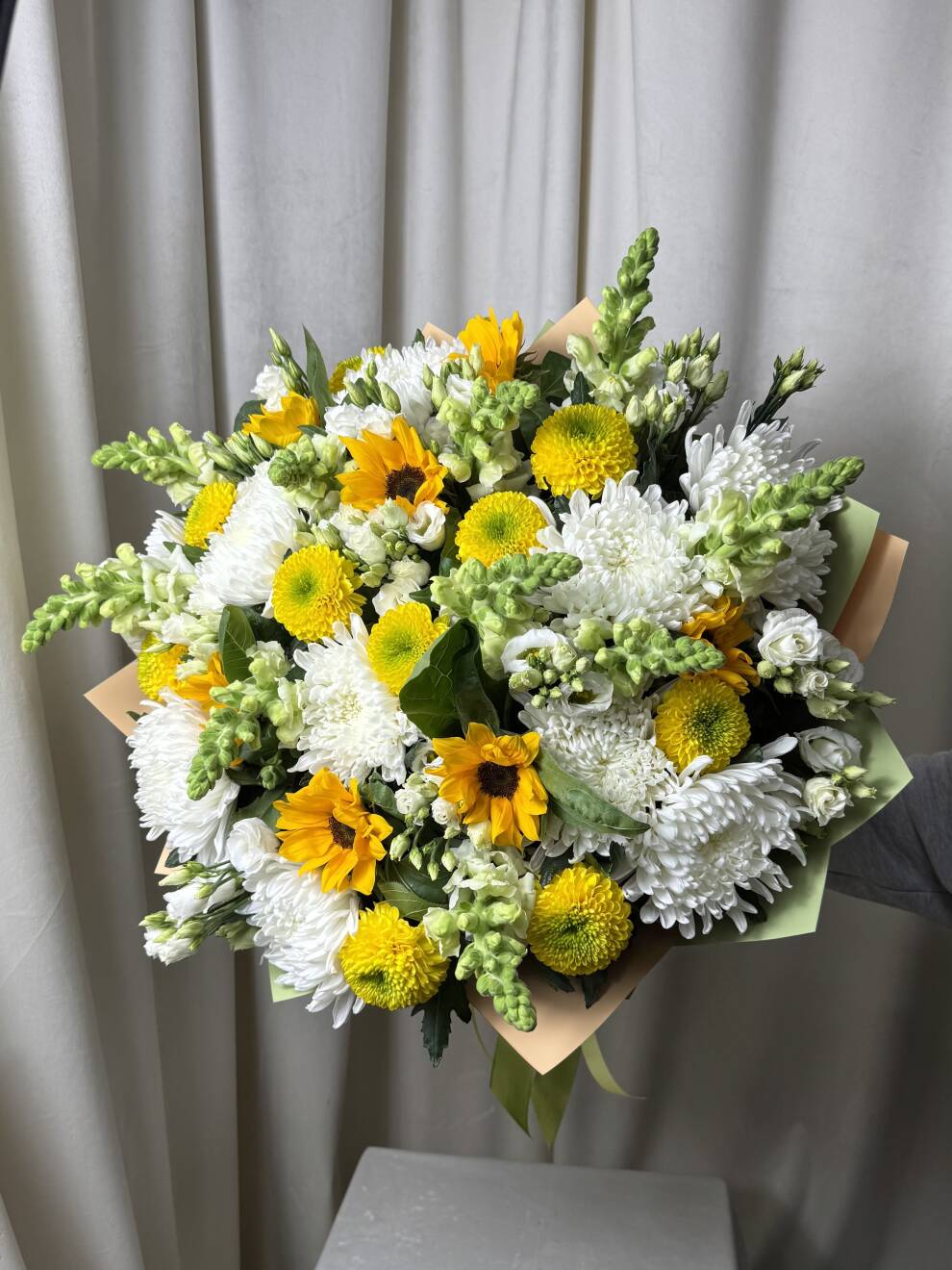 Букет из подсолнухов, хризантем и антиринума