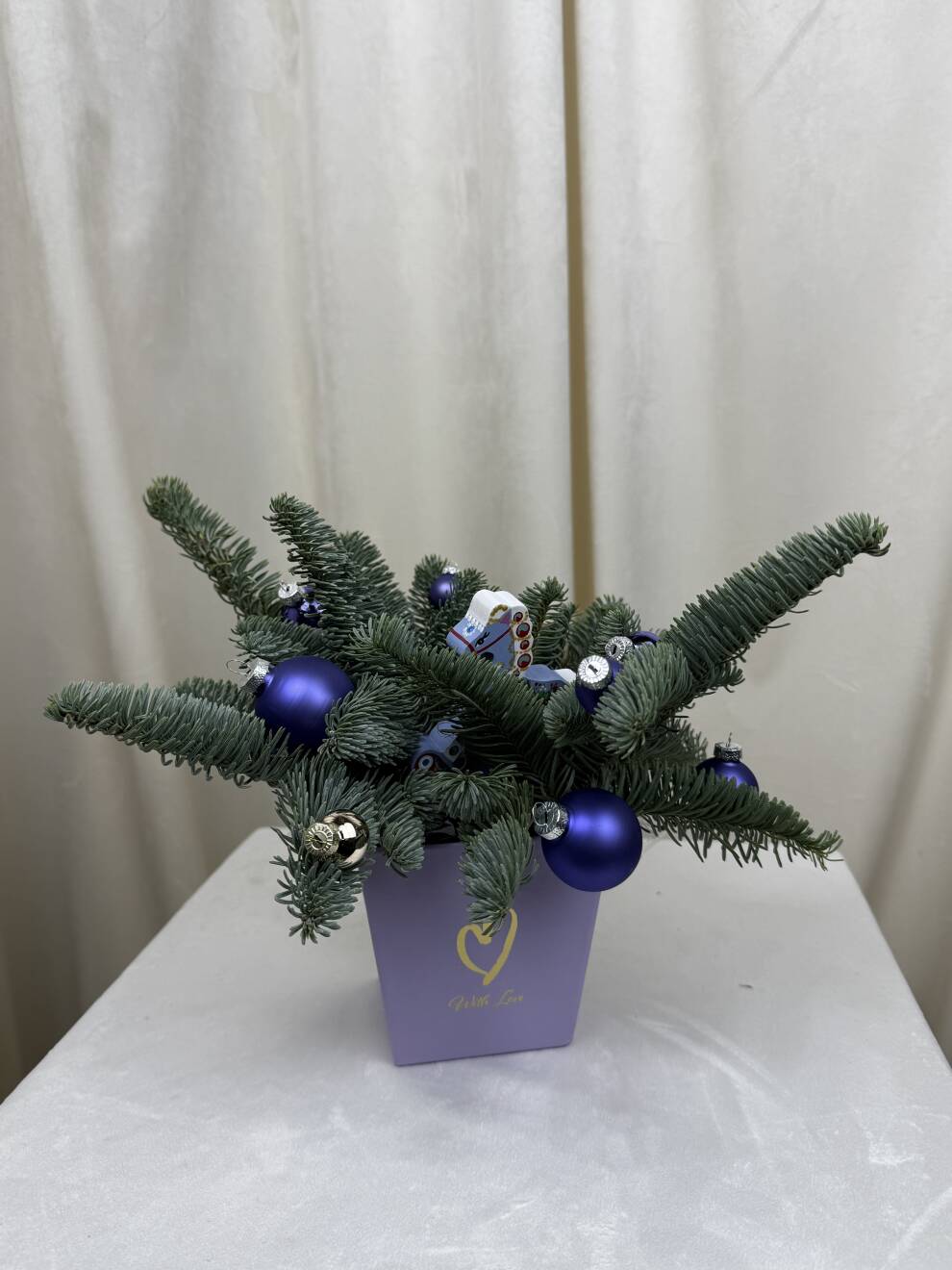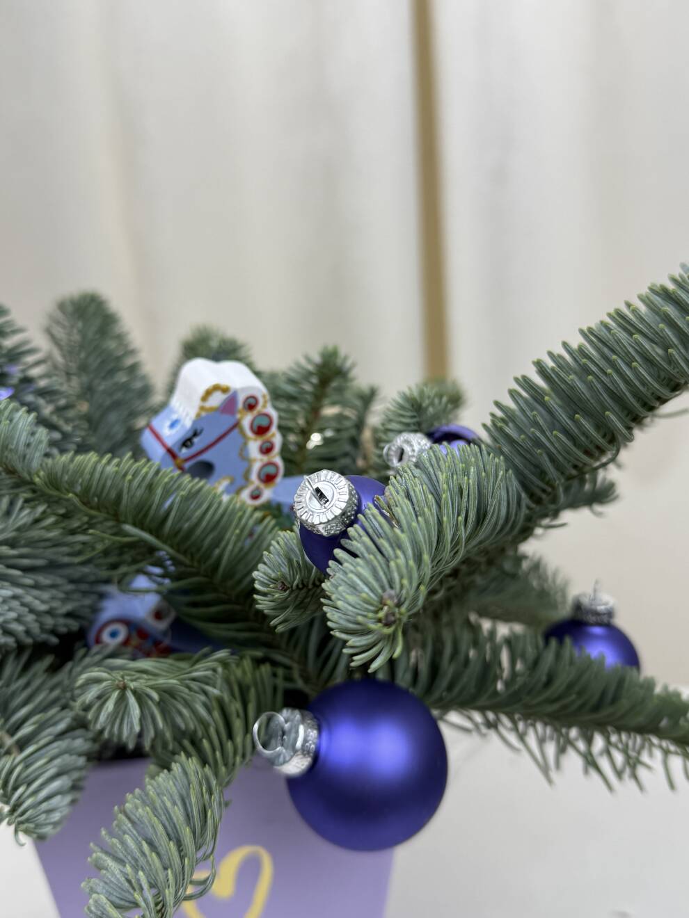 Новогодняя композиция из Нобилиса и синих шаров